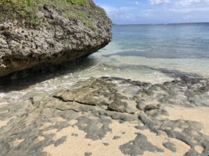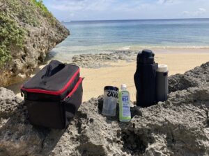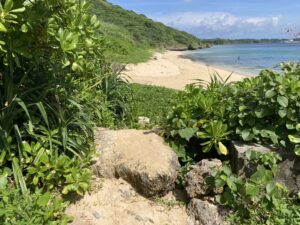綺麗な海なんですが、まずシャワーやお店はありません。